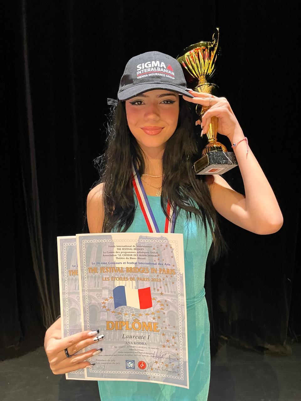 Ana Kodra represented Albania at the international “Étoiles de Paris – 2023” festival (Mar 29–Apr 3, Paris) and won the Grand Prix in her category, impressing the jury with exceptional vocals, artistry, and stage presence. The event—organized by WAPA and chaired by WAPA President Armando Ghukasyan—brought together participants from 15+ countries in a major Paris venue.